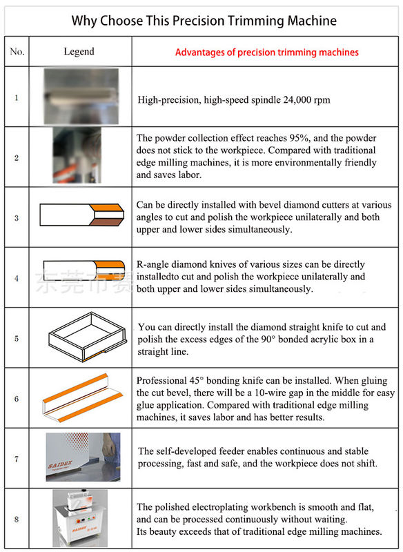 La máquina enrutadora acrílica SAIDEX es el instrumento de enrutamiento CNC ideal para ayudarlo a procesar acrílicos de forma rápida y precisa. Con un potente motor de 1,5 kW y un diámetro de pinza de 3,175 mm, esta máquina es perfecta para cortar en un ángulo de hasta 45°. Tiene certificación CE y viene con un marco de ángulo de hierro y embalaje de caja de madera, lo que la convierte en una opción segura y confiable para cualquier taller.